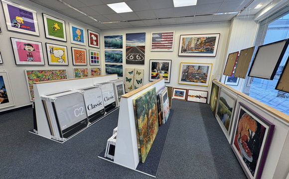 Viele Passepartouts und Rahmenleisten sind ständig vorrätig und da wir unsere Werkstatt im Hause haben und Ihre Arbeiten bei uns verbleiben,